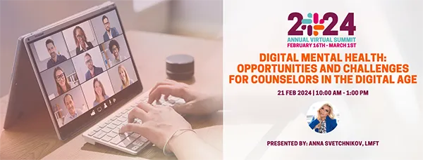 February 21, 2024 | 10:00 AM – 1:00 PM – Digital Mental Health: Opportunities and Challenges for Counselors in the Digital Age (Online CEU Course).
